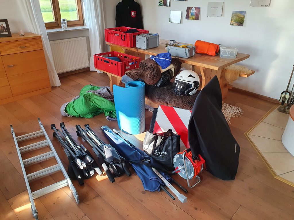 Während dem Frühstück beobachten wir einen Camper, wie er seinen Platz mit dem mitgebrachten Rasentrimmer bearbeitet. Respekt, was so manch einer dabei hat 😉
