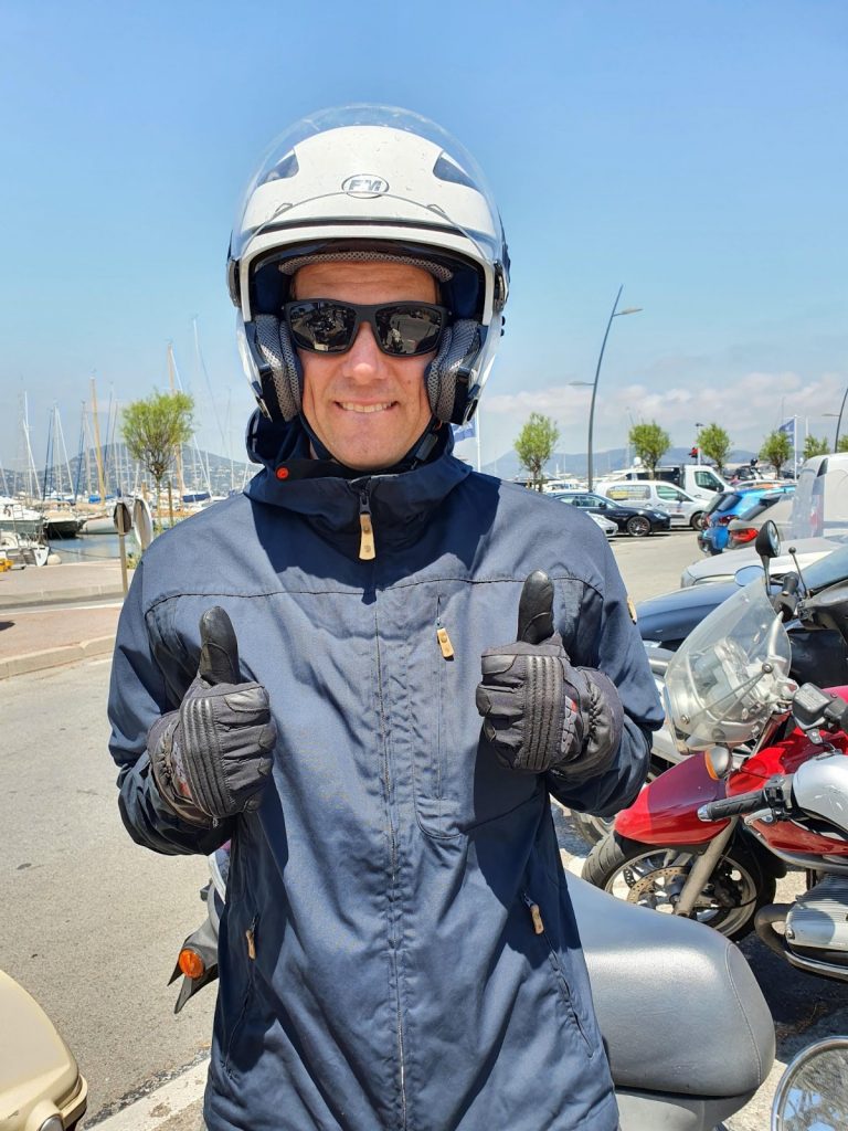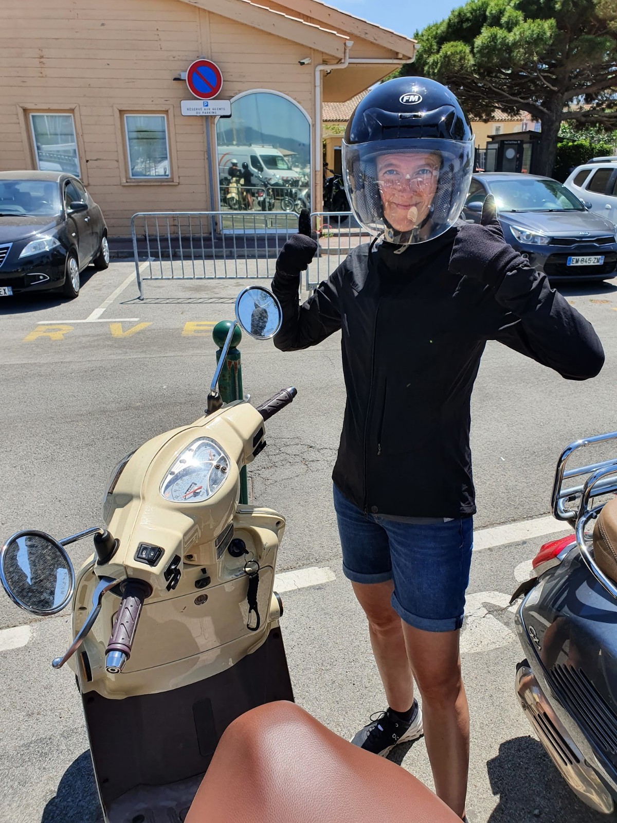 So gestärkt machen sich die (Schwieger)Eltern mit dem E-Bike auf sehr gut ausgebauten Radlwegen und wir mit dem Roller auf nach St. Tropez. Ganz brav und vorschriftsmäßig haben wir beide Handschuhe an, das ist in Frankreich nämlich Pflicht und so bekommen wir auch sicher keine kalten Hände…