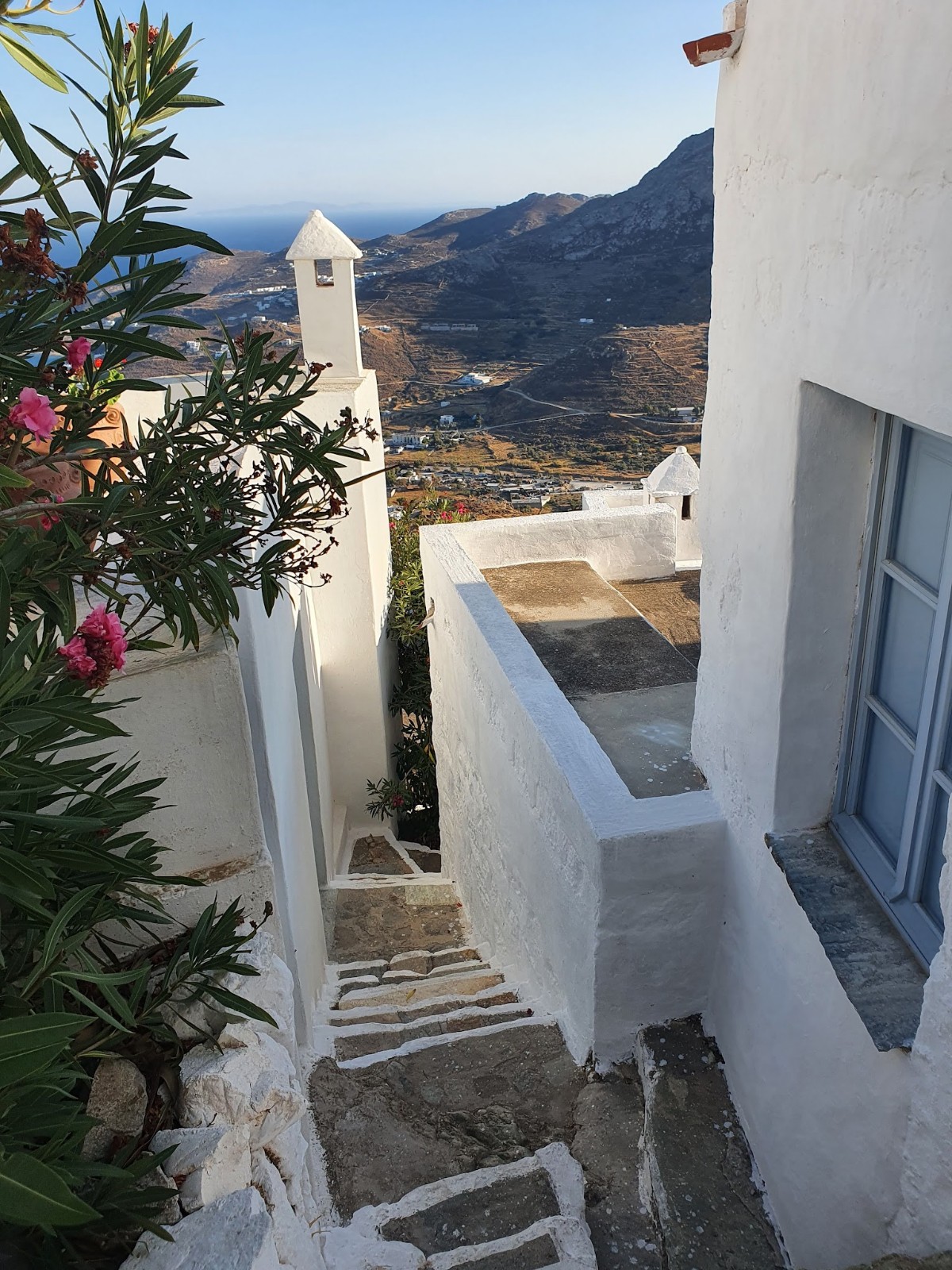 Die in den Berghang gebaute „Stadt“ Hora ist beeindruckend und der Aufstieg durchaus anstrengend. Es ist schön sich in den Gässchen zu verlieren und doch dem Ziel, dem Kastro, näher zu kommen. Der Ausblick ist gigantisch und erlaubt es sich vorzustellen wie es 500 Jahre vorher gewesen sein könnte, wenn ein Schiff in den Hafen eingefahren ist. Vor dem Abstieg gönnen wir uns einen kleinen Erfrischungscocktail bei der Bar Barbarossa. Hmmmm sau guad!