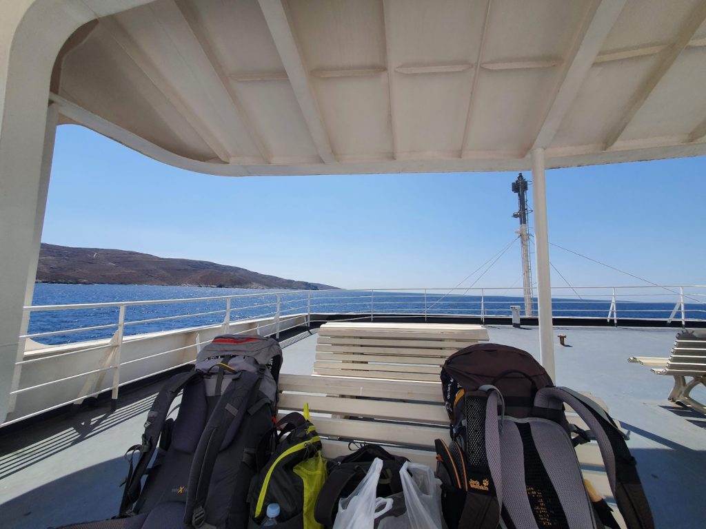 Serifos steht für Donnerstag auf dem Plan. Wir räumen gemütlich das Zimmer und machen uns auf den Weg zum Hafen. Die Fähre hat eine gute Stunde Verspätung, macht aber nix wir haben ja Zeit und ein schattiges Platzerl. Auf Serifos haben wir vor der Ankunft schon mal dir Fährpläne geprüft und festgestellt, dass wir entweder 2 oder 4 Tage bleiben. Da die Insel die mit den tollsten Stränden sein soll, entscheiden wir uns erstmal für die 4 Tage und machen eine Unterkunft klar. Diesmal sind wir nicht begeistert, da die Unterkunft als ruhiges Haus beschrieben ist, allerdings an einer der zwei Hauptstraßen liegt. Aufgrund dieser Erfahrung entscheiden wir auf Sifnos die Unterkunft wieder Oldschool, also vor Ort, zu suchen.